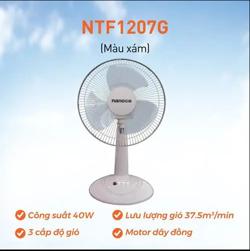 Quạt Bàn Nanoco NTF1207G (Màu xám)