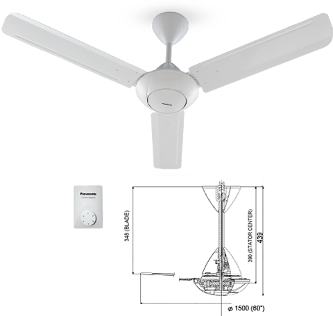 Quạt trần 3 cánh Panasonic F-60MZ2 mầu trắng và đen