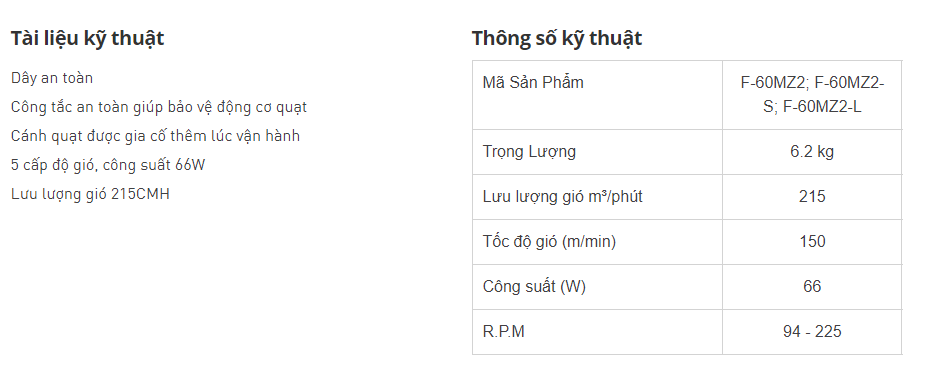 • Công tắc an toàn giúp bảo vệ động cơ quạt