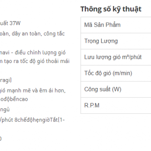- Động cơ DC tiết kiệm điện , công suất 37W