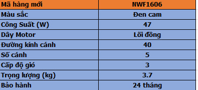 Quạt Treo Tường Nanoco NWF1606 (Màu Đen Cam)